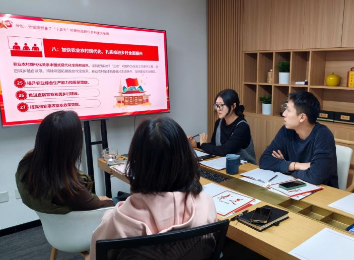 在深化理论学习环节,党员们集体研读了《求是》杂志刊发的习近平总书记重要文章及《思想政治工作研究》相关专题报道。通过逐篇学习、互动交流,大家进一步厘清了《建议》起草过程中坚持的目标导向与问题导向、系统思维等核心原则,深刻领悟了“坚持党的全面领导”“统筹发展和安全”等重要要求的实践内涵。
